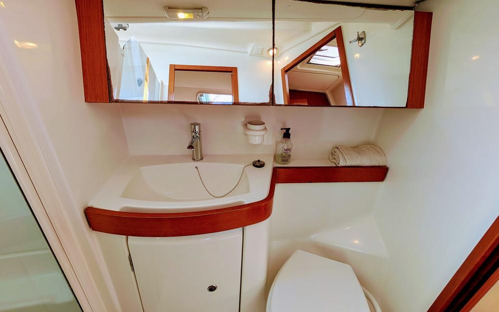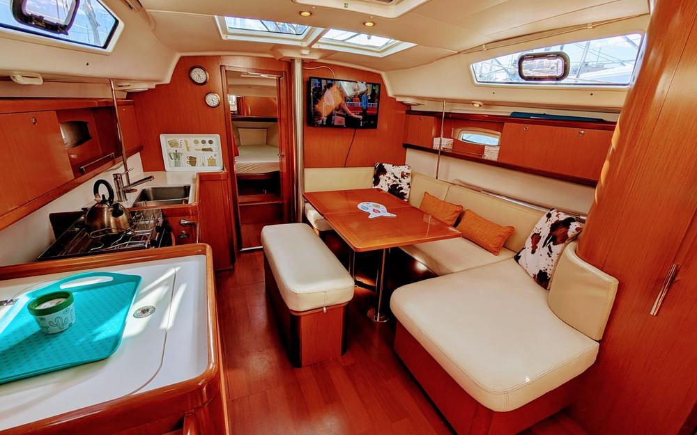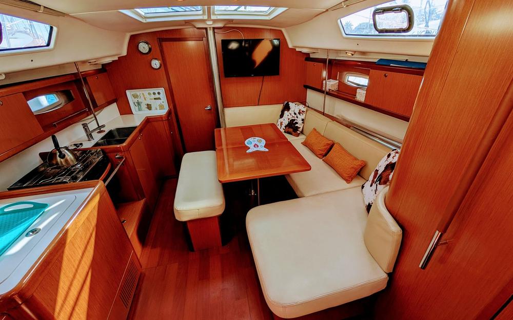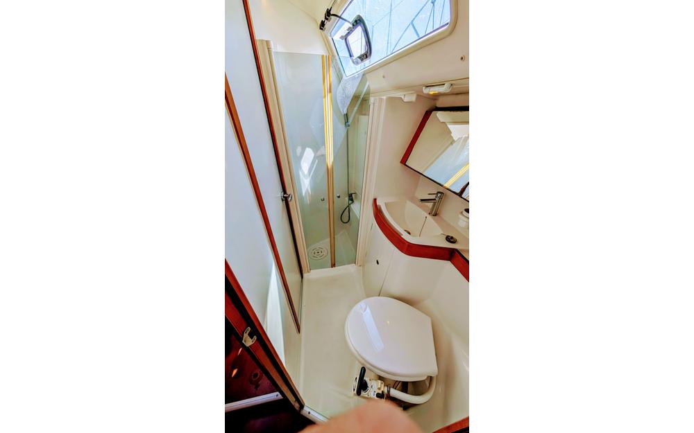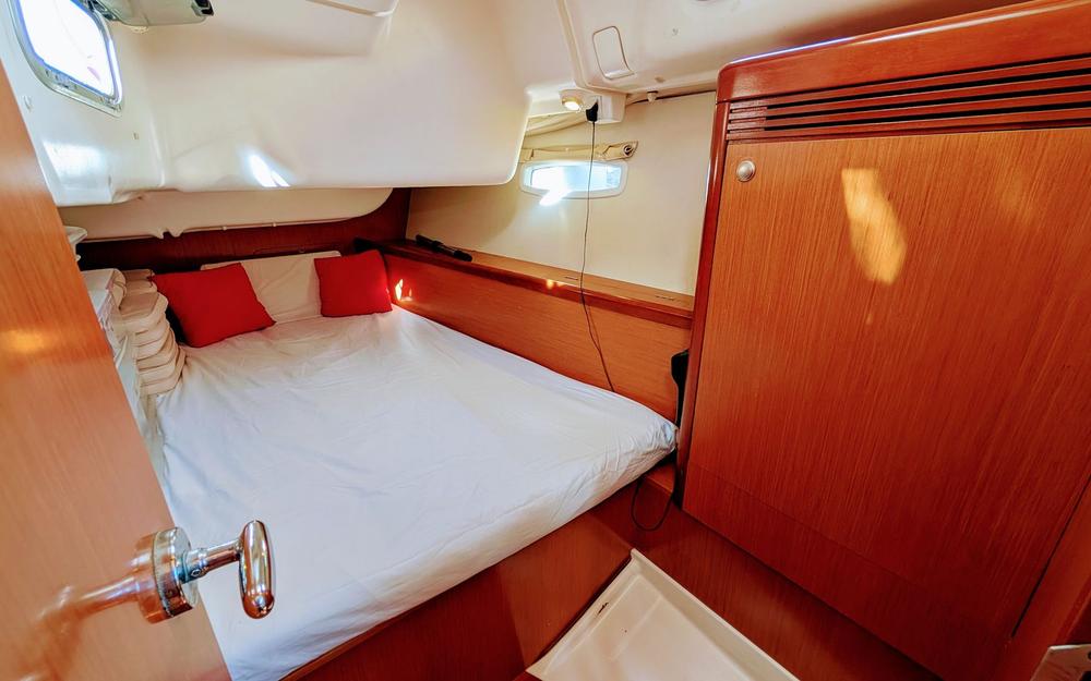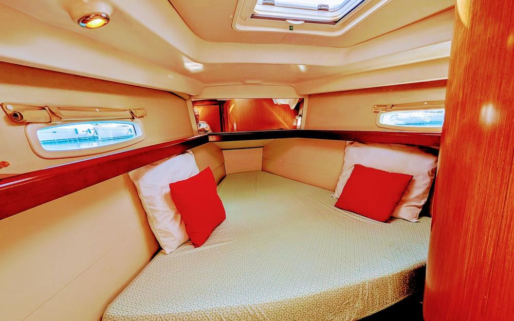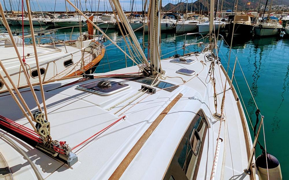 Con bimini, capota antirrocío y colchonetas en bañera y proa, es perfecto para disfrutar de travesías costeras o navegar hasta Baleares e Ibiza. Habilitado para 10 personas (recomendado para 7).