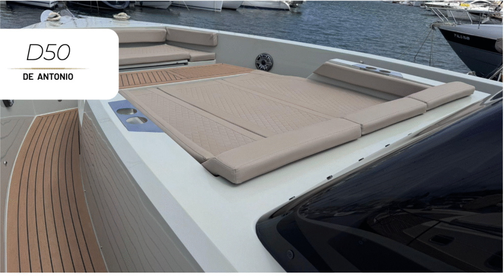 Con sus amplias zonas de solárium en proa y popa, plataforma hidráulica y diseño abierto, el D50 es perfecto para una jornada de navegación exclusiva desde Marina Dénia hacia Jávea, Moraira o las calas más espectaculares de la Costa Blanca.