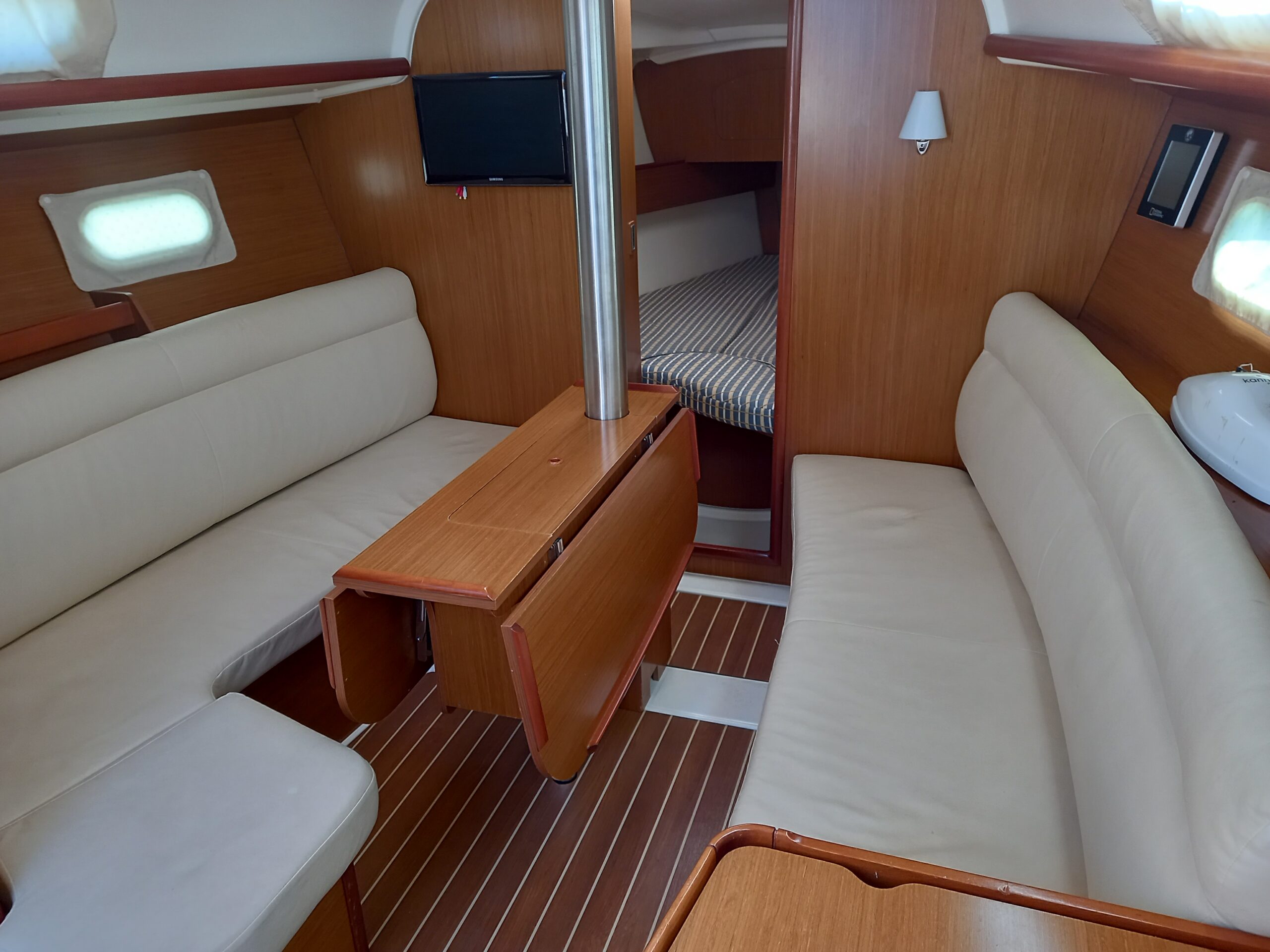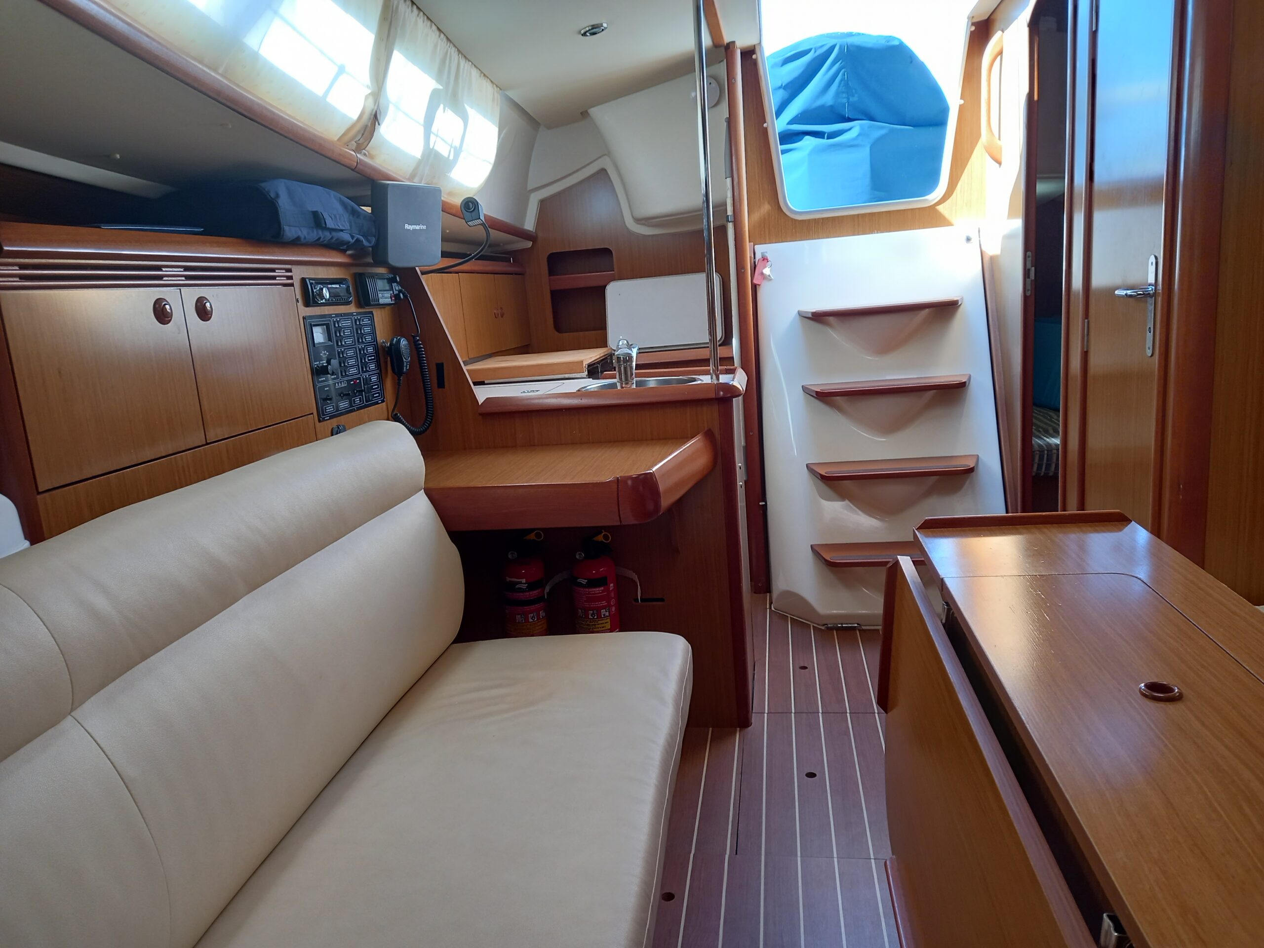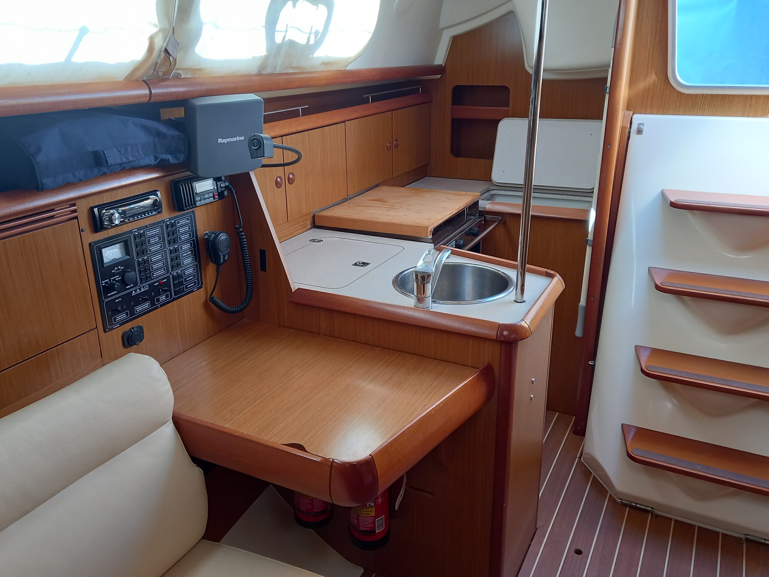 El Sun Odyssey 32i destaca por sus líneas limpias y su diseño firmado por Philippe Briand. Pensado para el crucero costero, ofrece una navegación cómoda con mayor y génova enrollables, electrónica completa en bitácora y una amplia bañera revestida de teca. Su bimini con extensión aporta sombra en verano y la mesa plegable en bañera permite disfrutar al máximo la vida a bordo.